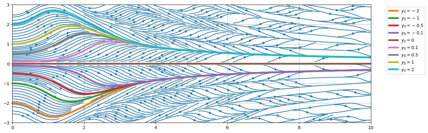 En guise d’exemple, considérons le problème de Cauchy \(y(0)=1\) et une équation logistique simple de la forme