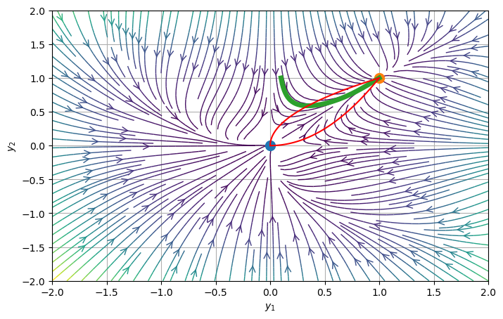 plt.streamplot(Y1, Y2, V1, V2,