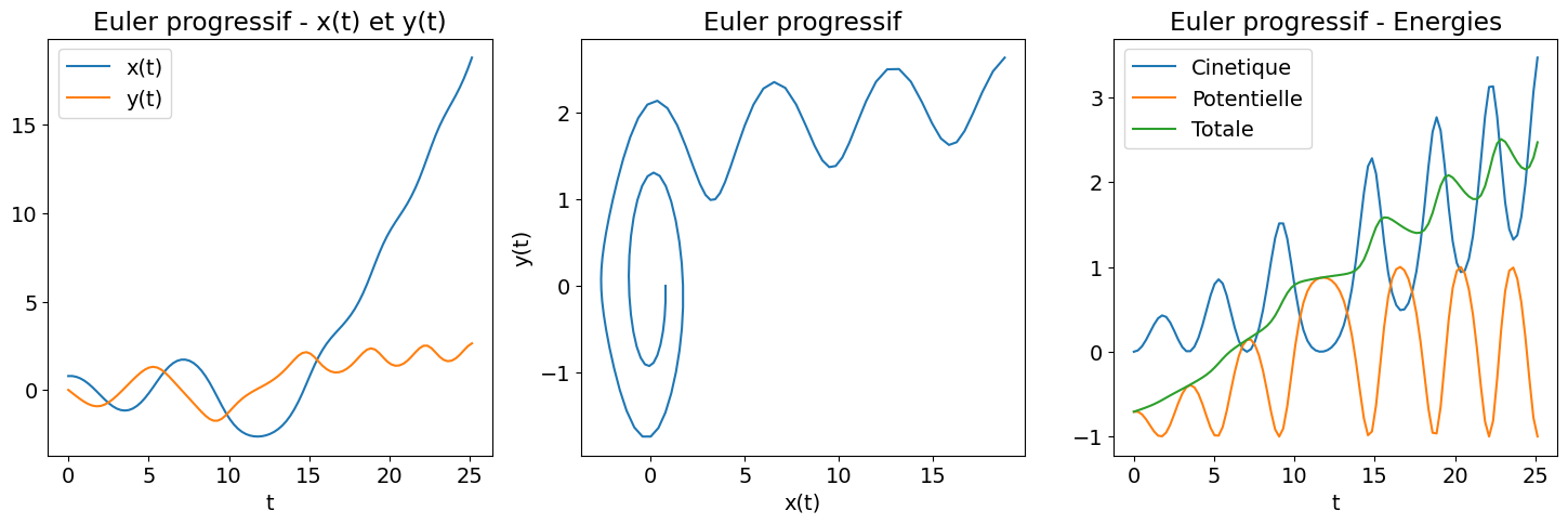 print ('Heun : |energie totale (t=Tfinal)-Energie totale (t=0)|=', abs(Et_heun[-1]-Et_heun[0]))