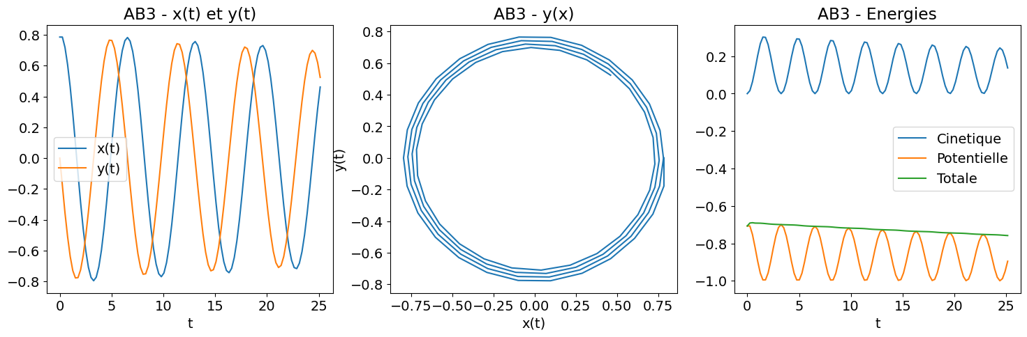 print( 'AB3 : |energie totale (t=Tfinal)-Energie totale (t=0)|=', abs(Et_AB3[-1]-Et_AB3[0]))