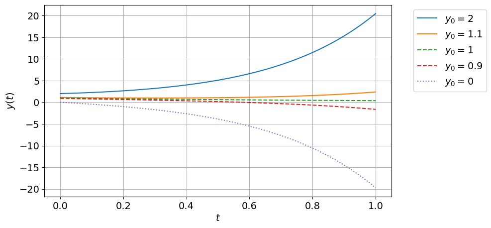 t0, tfinal, y0 = 0, 1, 1