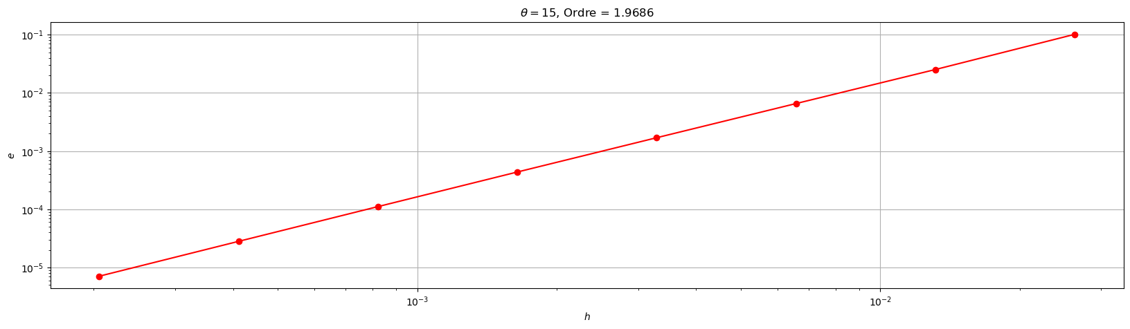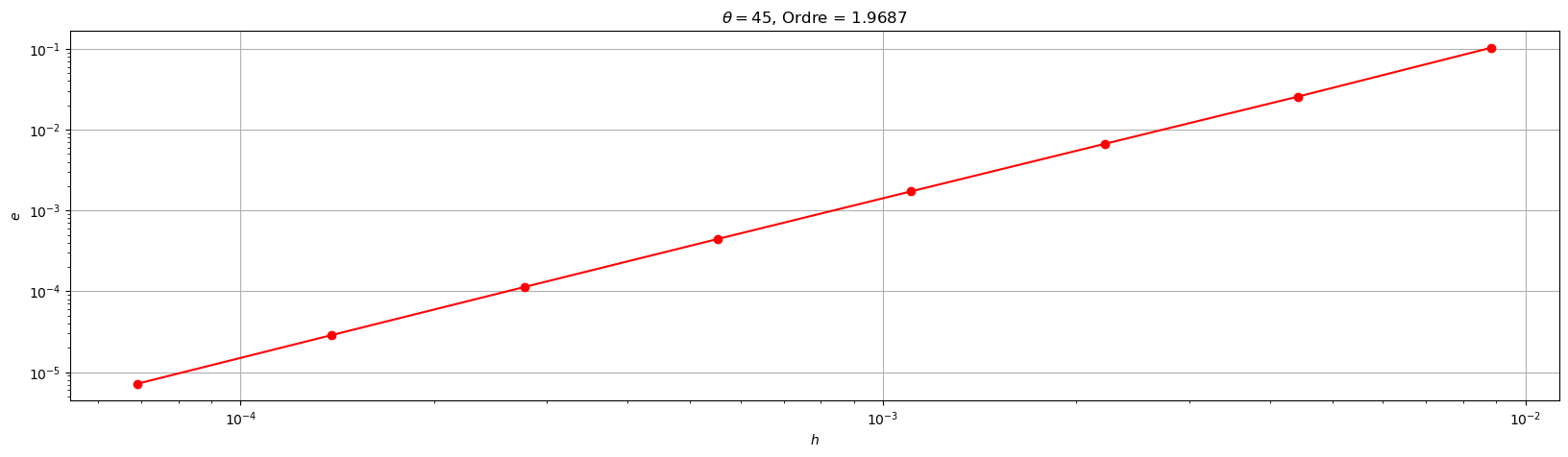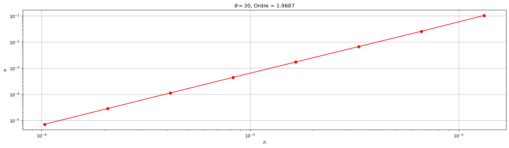 plt.title('$\\theta=${}, Ordre = {:1.4f}'.format(theta,pente))