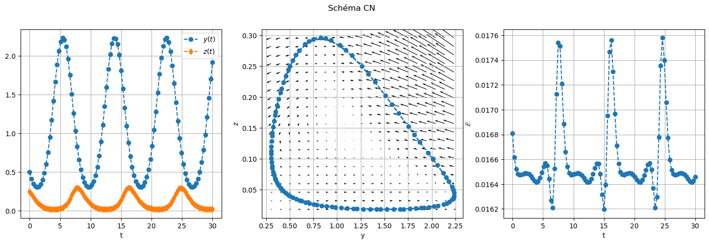 Même exercice avec le schéma de Cranck Nicolson.