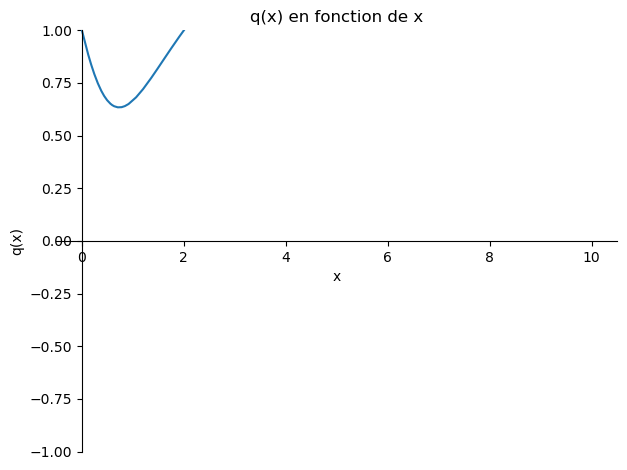 ylabel='q(x)', xlabel='x', title='q(x) en fonction de x')