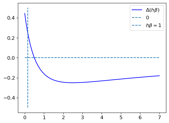 plt.vlines(2/13,-0.5,0.5, label=r'$h\beta=1$', linestyles='dashed')