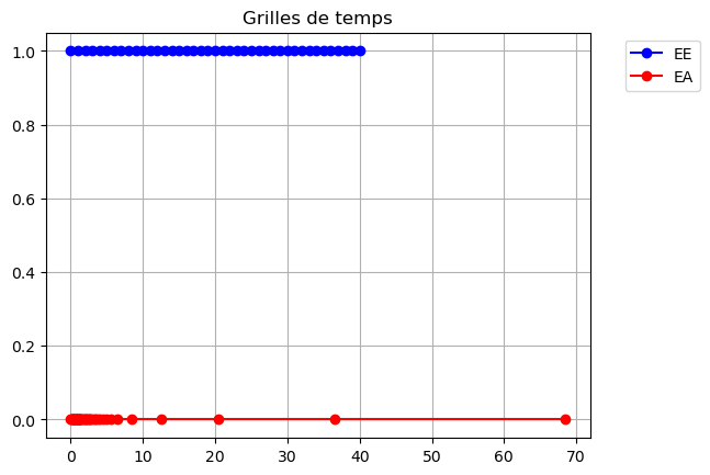 # Affichons juste les deux grilles de temps sur une droite horizontale