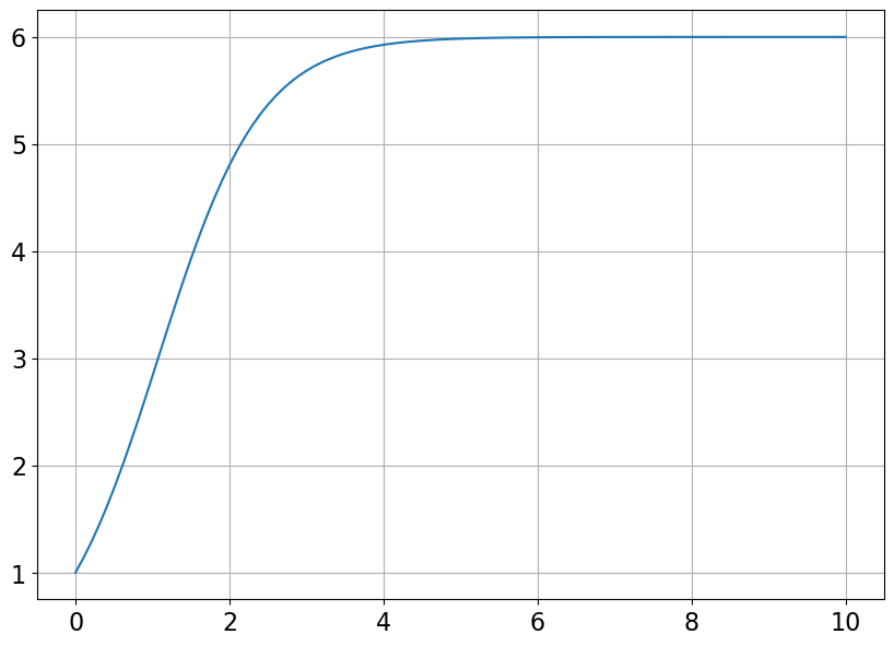 \(\displaystyle \lim_{t \to \infty} y{\left(t \right)} = 6\)