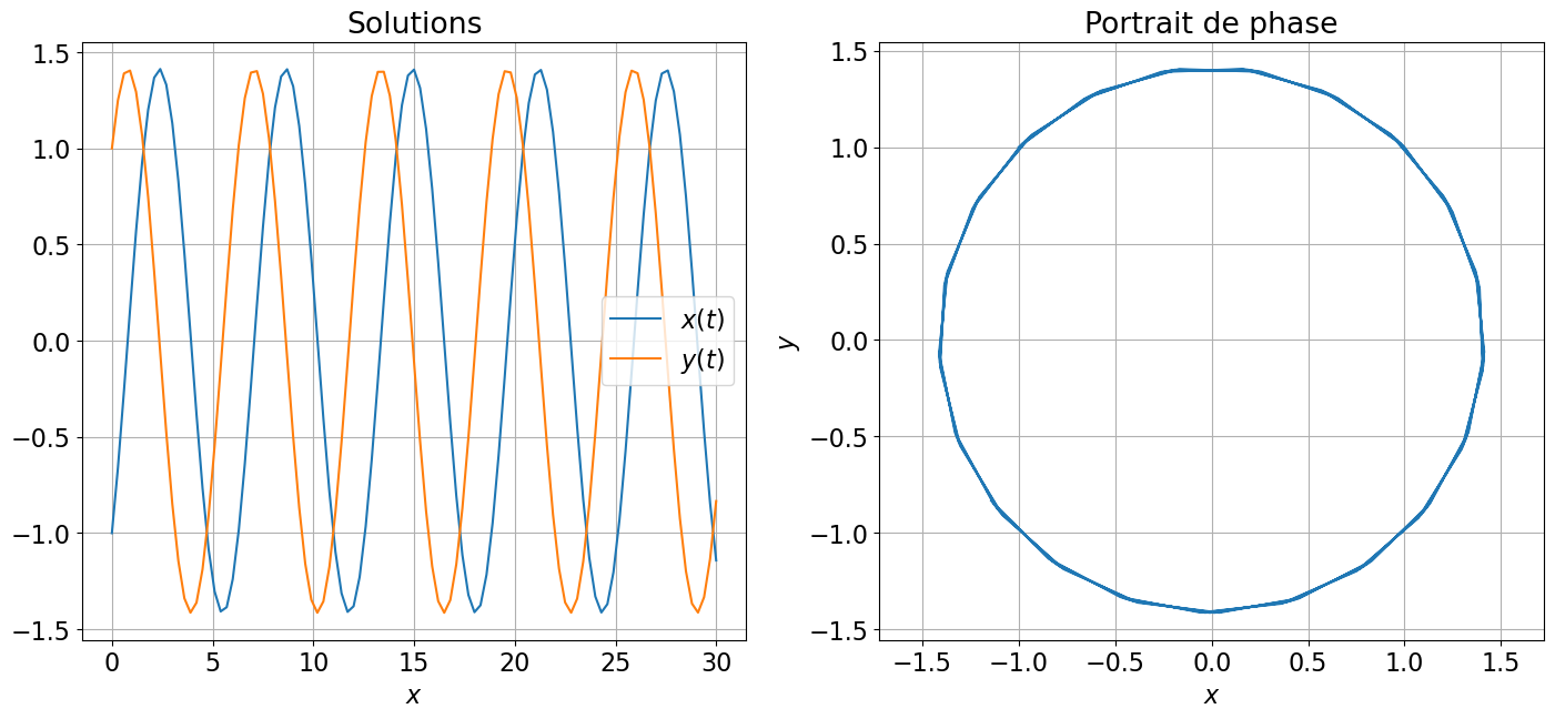 pour \(x(0)=-1\) et \(y(0)=1\).