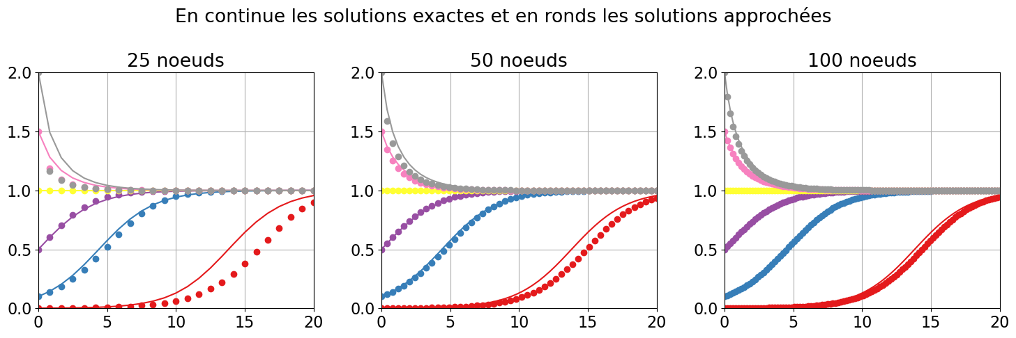 Solution approchee en \(t=2\) : \(u(2)\) avec \(N\) points: