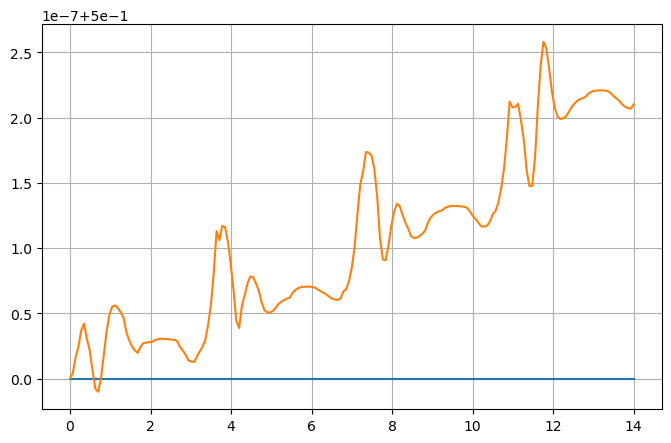 sol_DOP853 = solve_ivp(fun=phi, t_span=(t0,5), y0=[y0], t_eval=tt, method='DOP853')