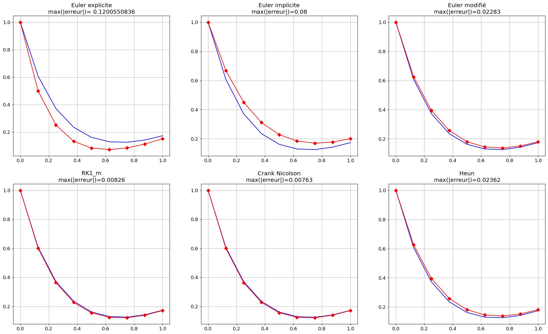 Exercice 1 [45 minutes] : Implémentation et test des schémas d’Euler explicite et implicite sur un exemple avec solution exacte. Votre travail consiste à ajouter les autres schémas classiques.