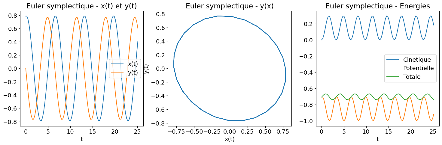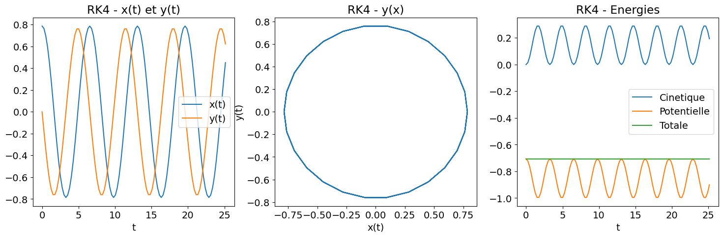 print ('RK4 : |energie totale (t=Tfinal)-Energie totale (t=0)|=', abs(Et_RK4[-1]-Et_RK4[0]))