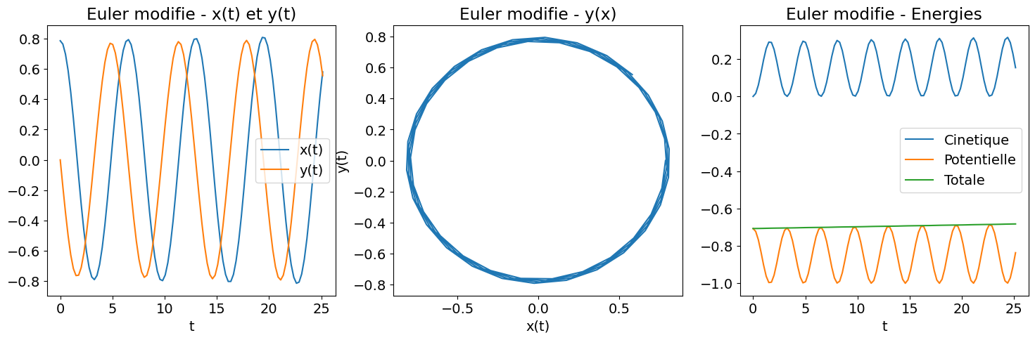 print ('Heun : |energie totale (t=Tfinal)-Energie totale (t=0)|=', abs(Et_heun[-1]-Et_heun[0]))