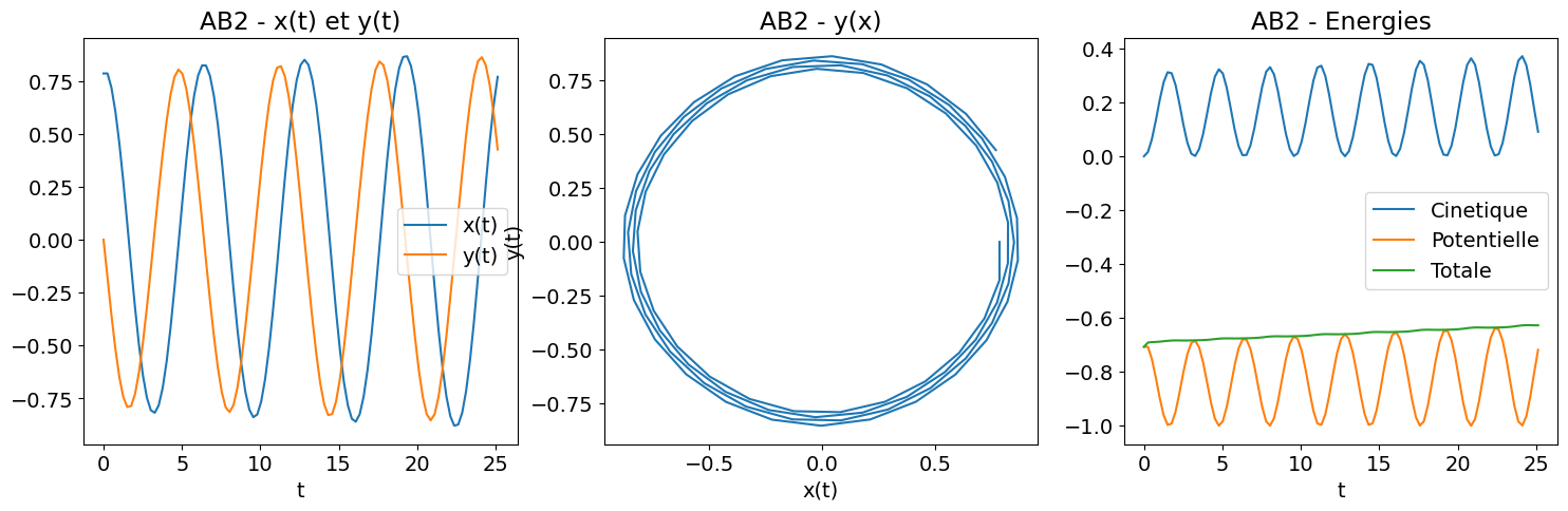 print( 'AB3 : |energie totale (t=Tfinal)-Energie totale (t=0)|=', abs(Et_AB3[-1]-Et_AB3[0]))