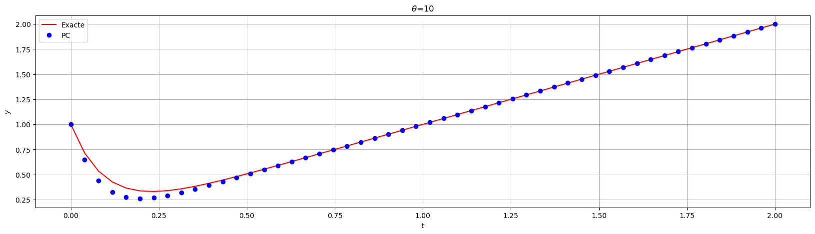 sol_exacte = lambda t : t+np.exp(-theta*t)