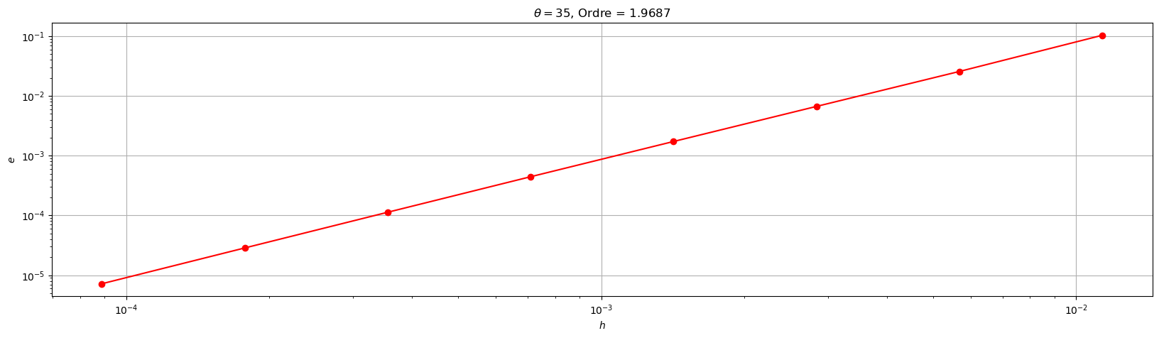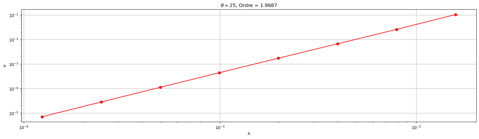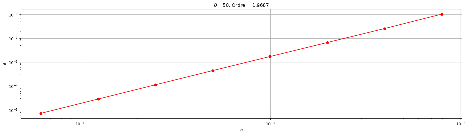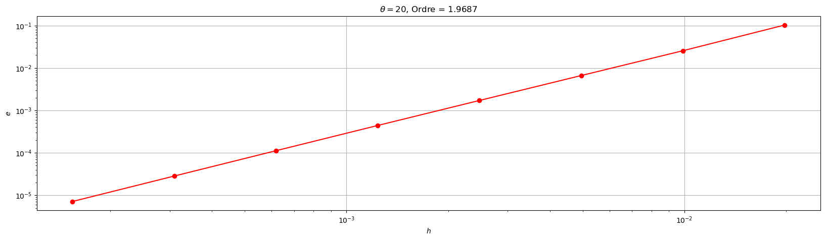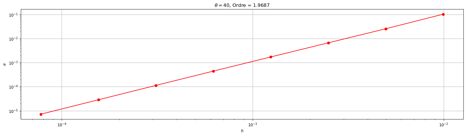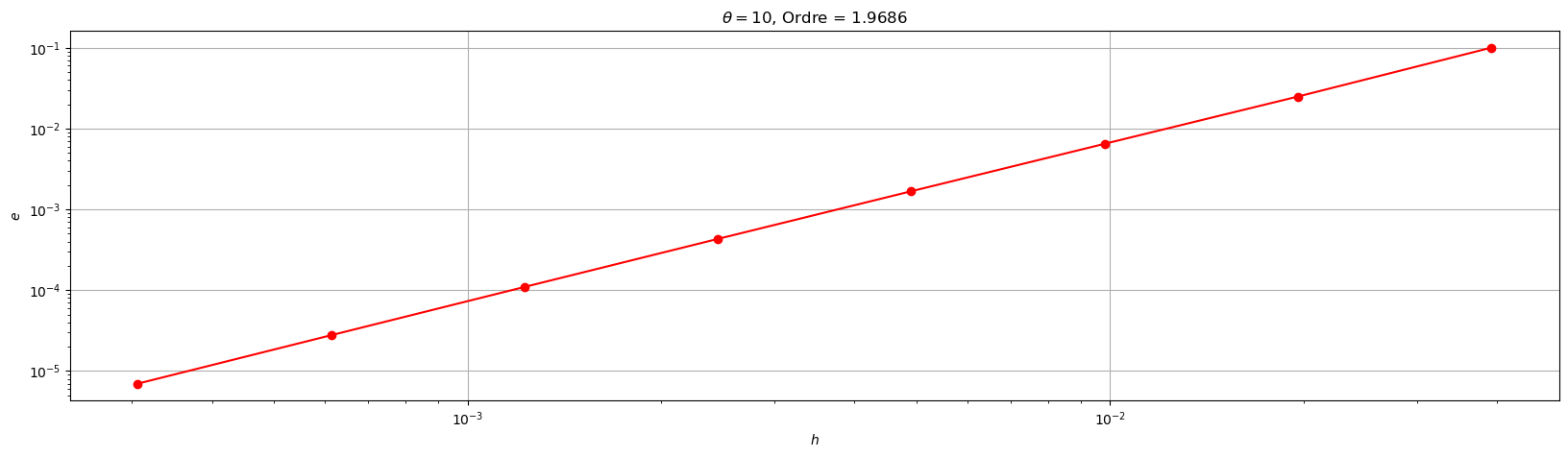plt.title('$\\theta=${}, Ordre = {:1.4f}'.format(theta,pente))