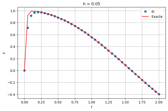 # uu = EE(phi, tt, y0) # pour montrer les pb de stabilité avec le même nombre de points