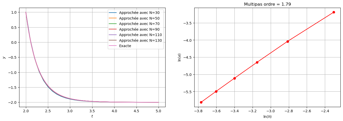 On a prouvé que la méthode est zéro-stable. Ainsi, si elle est consistante, alors elle est convergente.