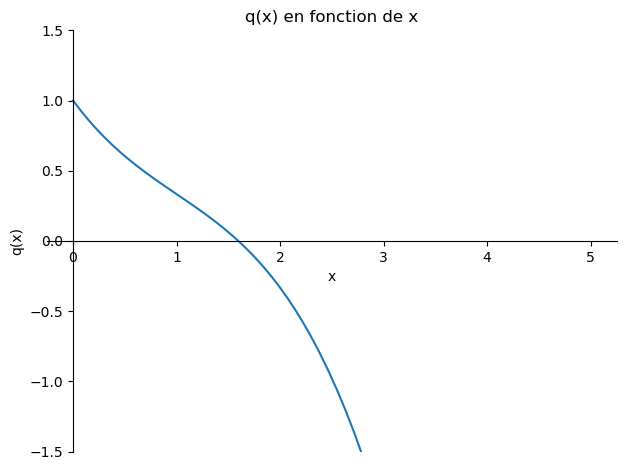 ylabel='q(x)', xlabel='x', title='q(x) en fonction de x')