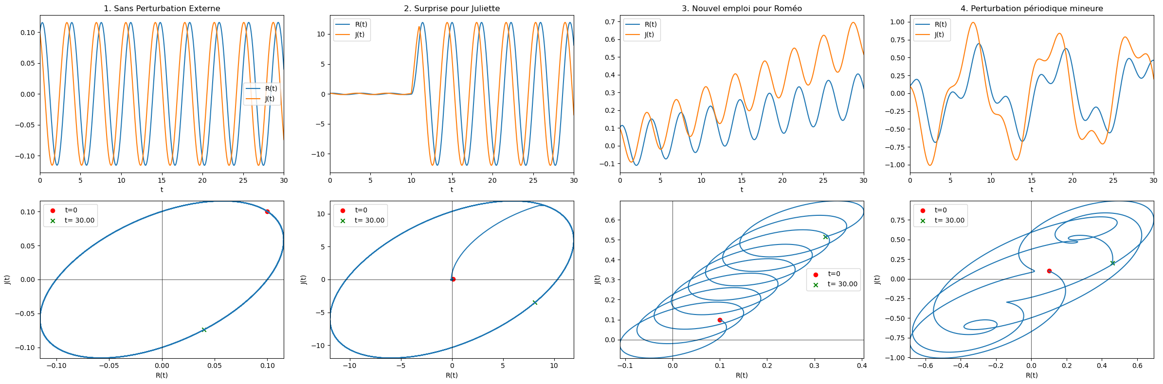 Surprise pour Juliette : le plan de phase suggère que ce type de perturbation ou de stimulus romantique peut entraîner un amour mutuel.