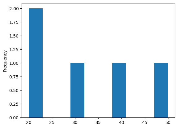On peut tracer différents types de graphiques en utilisant l’argument kind de la méthode plot() : bar pour un graphique en barres, hist pour un histogramme, box pour un diagramme en boîte, etc.