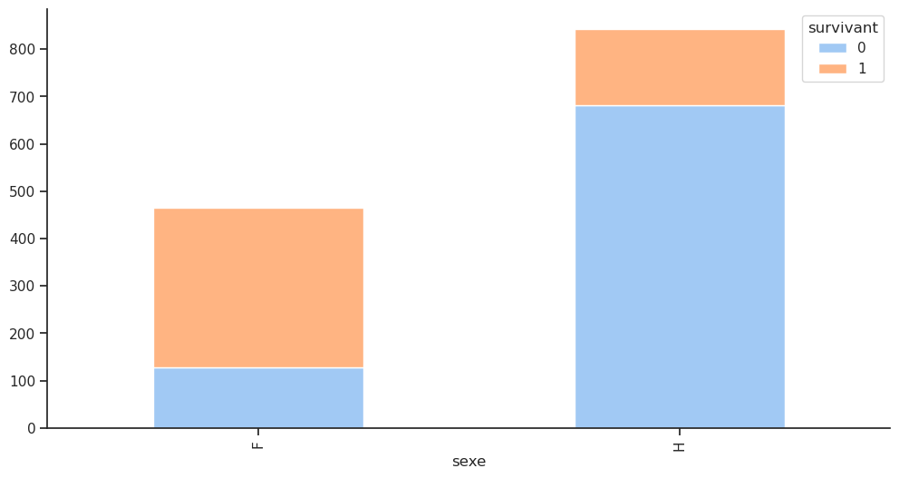 D’après l’histoire, la plupart de ceux qui ont survécu étaient des femmes. Vérifions si c’est bien le cas en calculant le nombre de survivants par sexe dans un tableau croisé.