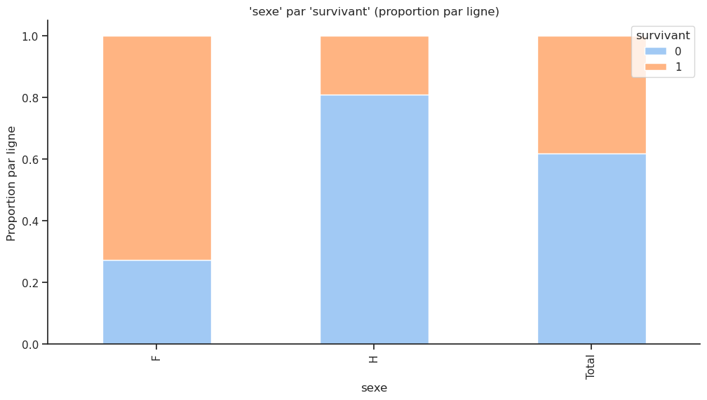 Taux de survie par sexe : les 3/4 des femmes ont survécu contre 1/5 des hommes, comme le montre le tableau suivant.
