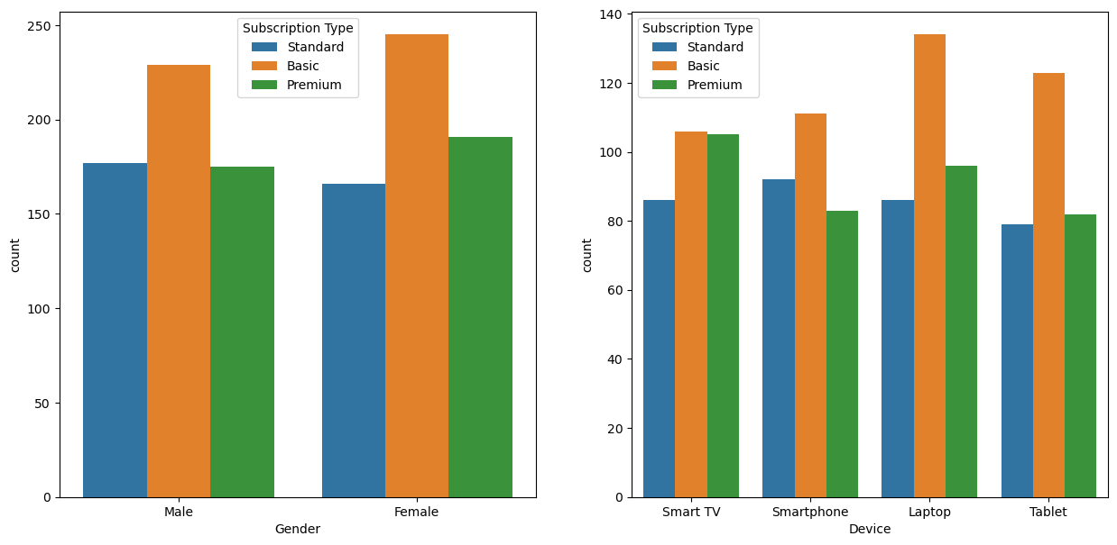 | Subscription Type | Join Date | Last Payment Date | Country | Gender | Device | Plan Duration | |
